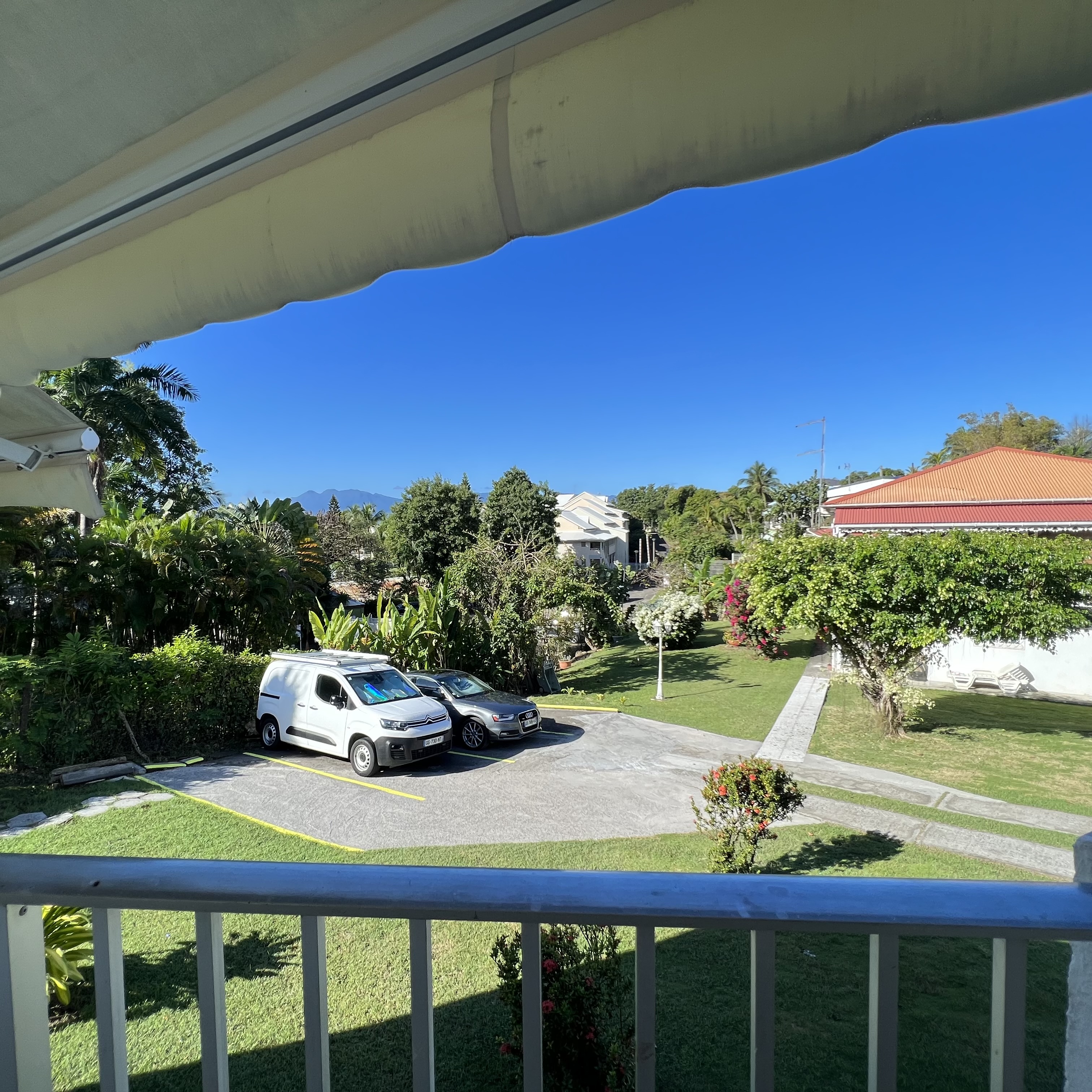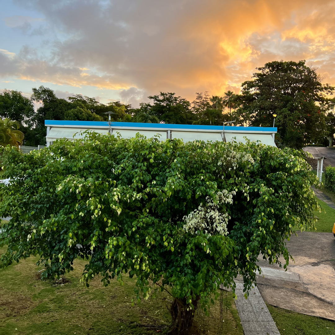 23/04/2024 porte acces plage Vue sur la montagne du jardin d'Ixora Gîte Ixora portail qui se ferme Couleur levée de soleil Ciel de feu Ciel doré Gîte Ixora portail qui s'ouvre place deparking en intérieur Vue panoramique du bâtiment Ixora