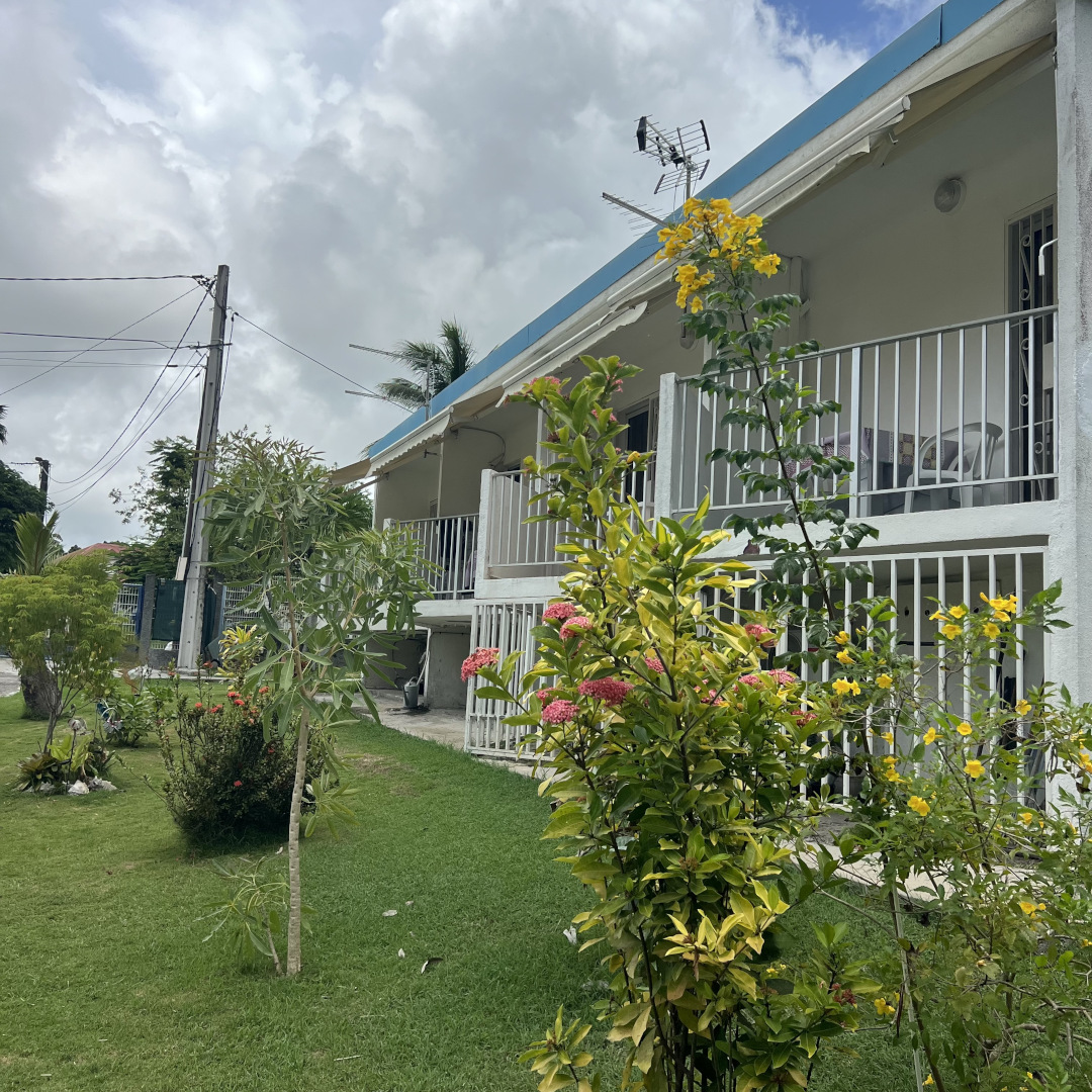 Un ensemble de 4 studios, terrasse + balcon, accès direct plage à Gosier Centre. Location équipée d'une citerne / Pas de coupure d'eau